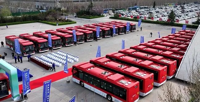 (山東重工旗下中通客車出口智利的895輛純電動客車訂單的首批車輛在山東聊城發車)