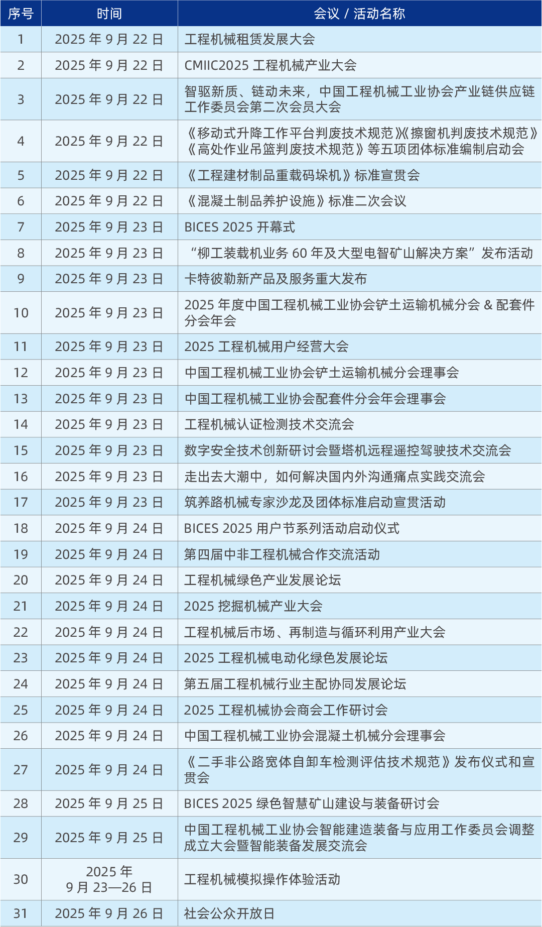 距9月23—26日中國(北京)國際工程機(jī)械、建材機(jī)械及礦山機(jī)械展覽會(huì)(BICES 2025)開幕倒計(jì)時(shí)40天之際,BICES組委會(huì)正式發(fā)布了首批展會(huì)同期活動(dòng),豐富的同期高質(zhì)量活動(dòng)是BICES明顯區(qū)別其他展會(huì)的特色之一,這也是繼近日發(fā)布首批展商名單和觀眾邀請(qǐng)函后,BICES 2025在展前的又一重要發(fā)布。